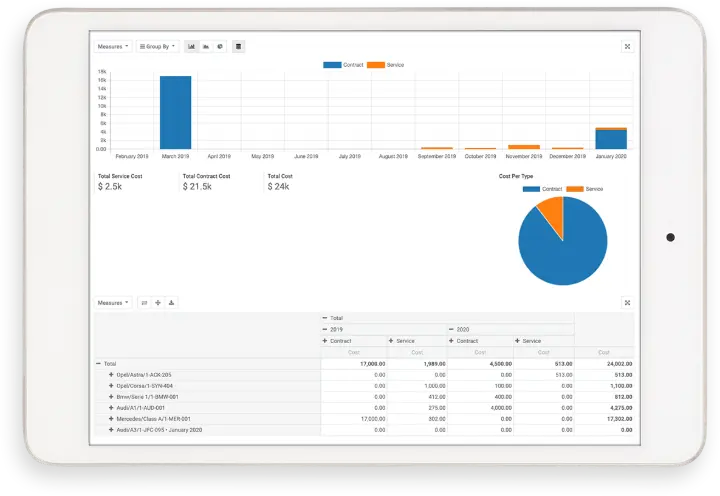 Analyze all expenses related to a specific vehicle or service category. Utilize the reporting tool to compare various cost types (identify which vehicles incur the highest expenses; track which services were conducted on which vehicles, etc.). Gain valuable insights into the return on investment for each vehicle, enabling you to make informed decisions to enhance your fleet investments.