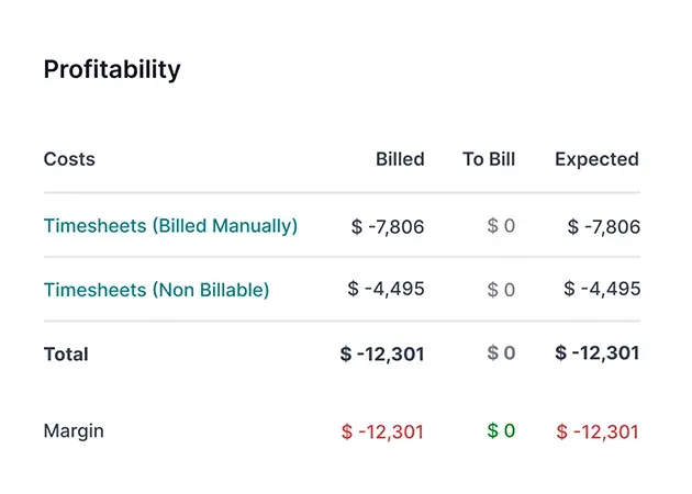 Incorporated with financial budgets, timesheet management, buying, and sales.