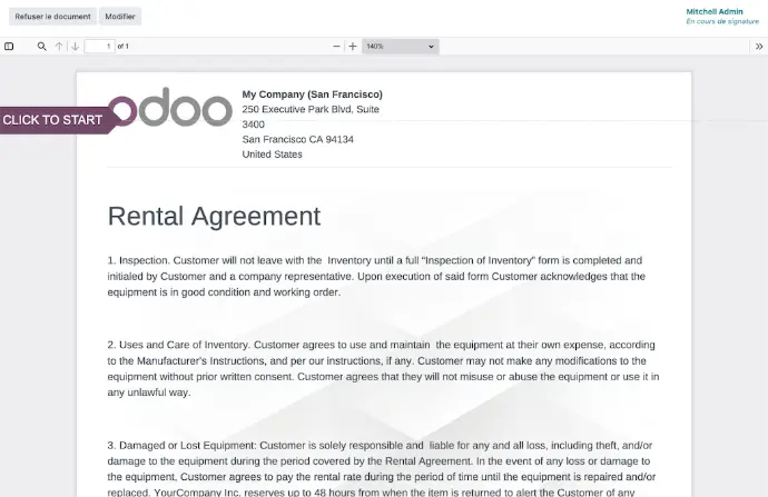 Odoo Rental simplifies the management of the rental process. Track products, organize pickups, and finalize agreements all from a single, user-friendly platform.