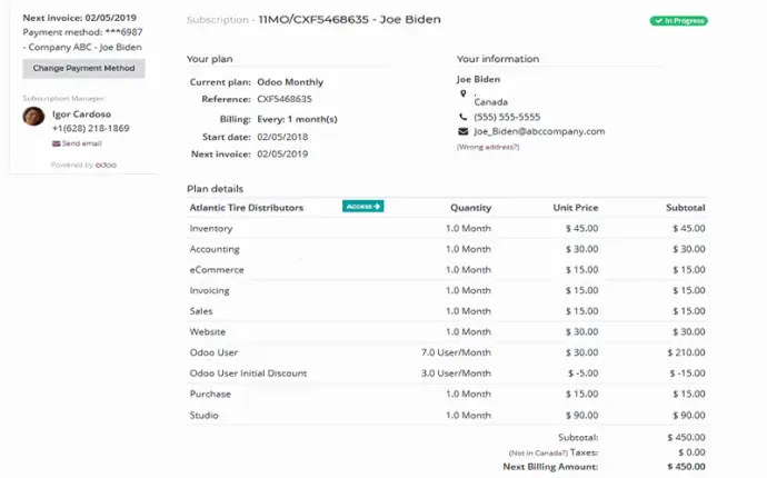 With Odoo taking care of recurring sales and subscriptions, you can dedicate your time to enhancing your service and nurturing customer relationships. Create clear contracts in moments, automate invoicing, manage your taxes effortlessly, and maintain a clear view of your payments. Everything operates automatically based on your chosen preferences.