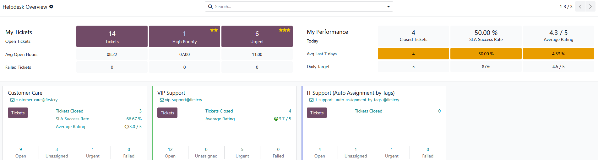 Get instant insight into your team’s support workload with a clear Kanban view, allowing you to track, prioritize, and resolve tickets efficiently. Organize tickets your way, create reusable response templates, and automate emails for faster service. Odoo can trigger actions automatically based on your SLA rules, streamlining your helpdesk operations so your team can focus on what matters most.